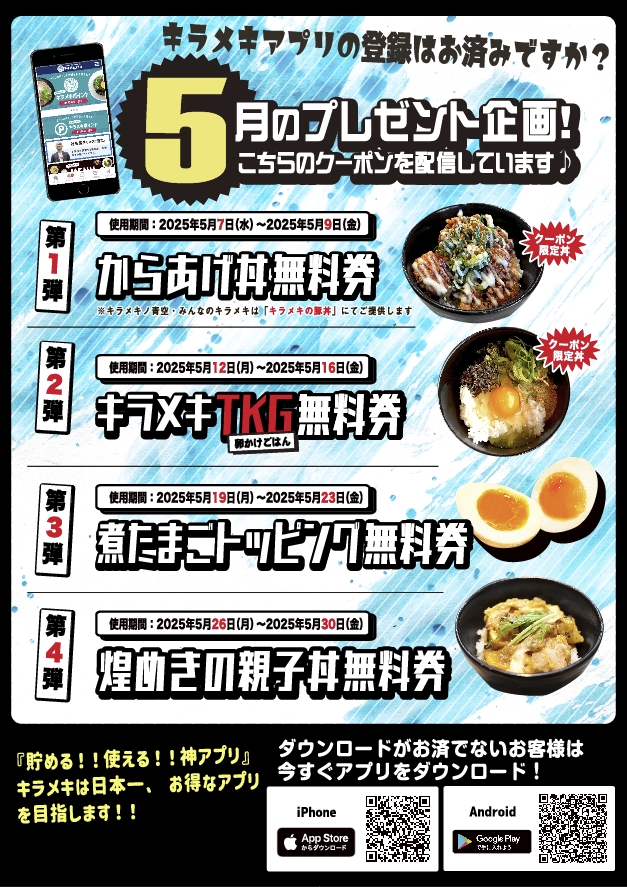 是非とも『キラメキアプリ』をご登録いただき、毎月配信しておりますお得なクーポンをGETしてください!!