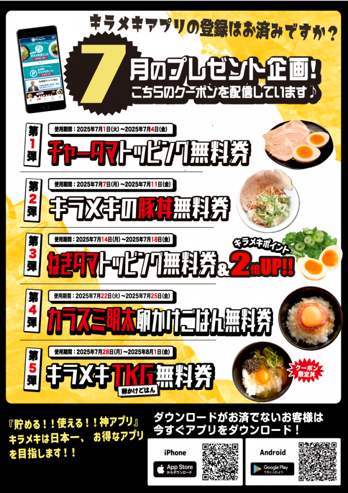 是非とも『キラメキアプリ』をご登録いただき、毎月配信しておりますお得なクーポンをGETしてください!!